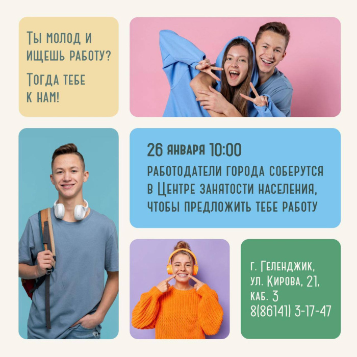 26 января в 10 часов на базе Центра занятости соберутся работодатели, которые готовы взять к себе на предприятие, в организацию или фирму молодых людей. Прямо на месте расскажут обо всех требованиях, назовут размер заработной платы.