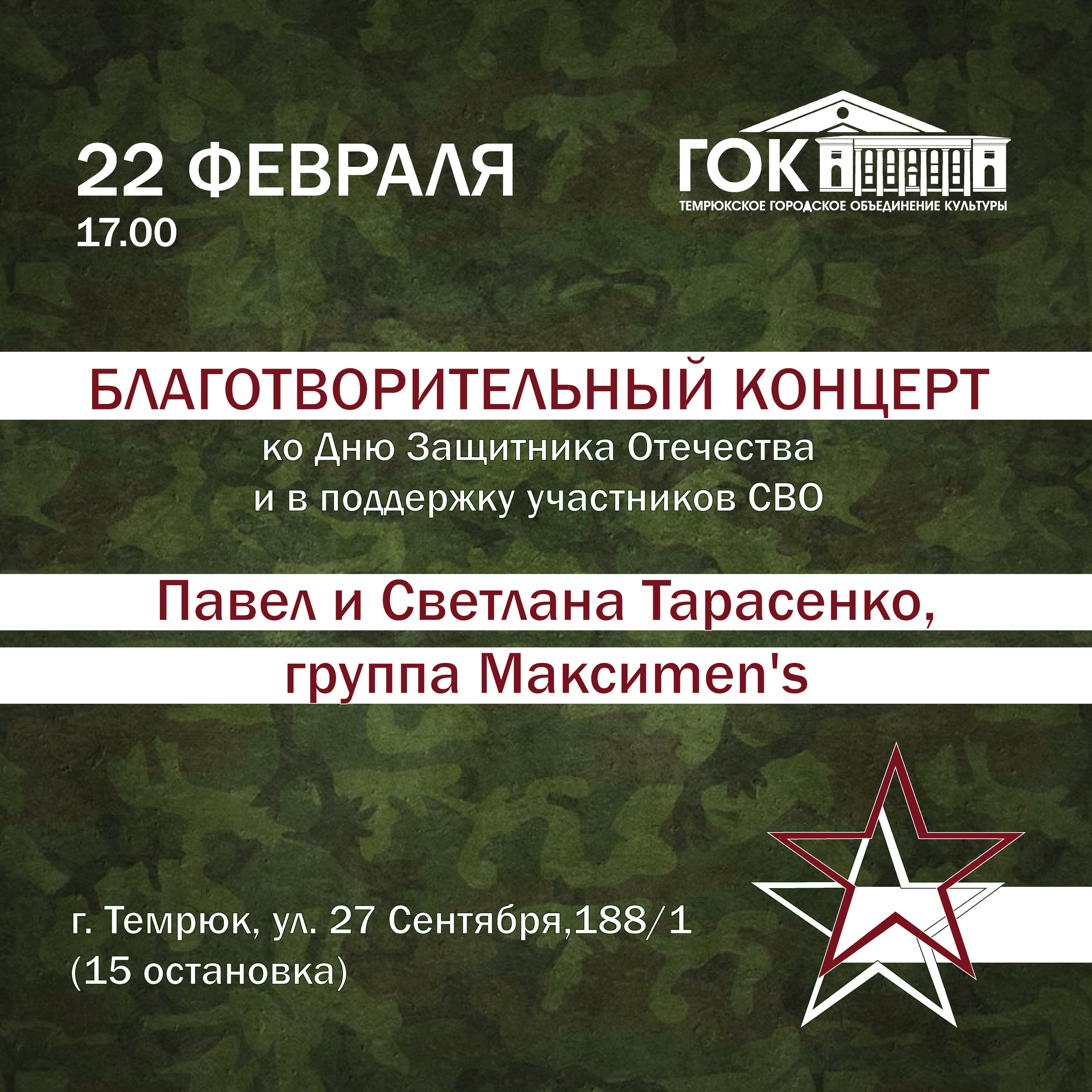 В год Защитника Отечества мы объявляем сбор средств в рамках благотворительного концерта, который состоится в Городском доме культуры 22 февраля в 17 часов Все средства будут направлены на нужды бойцов,