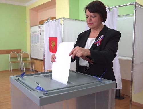 Директор средней школы № 1 им. А.А. Туркина станицы Динской, почетный работник общего образования РФ, Заслуженный учитель Кубани, депутат Совета Динского района проголосовала на избирательном участке № 12-03 в станице Динской.
