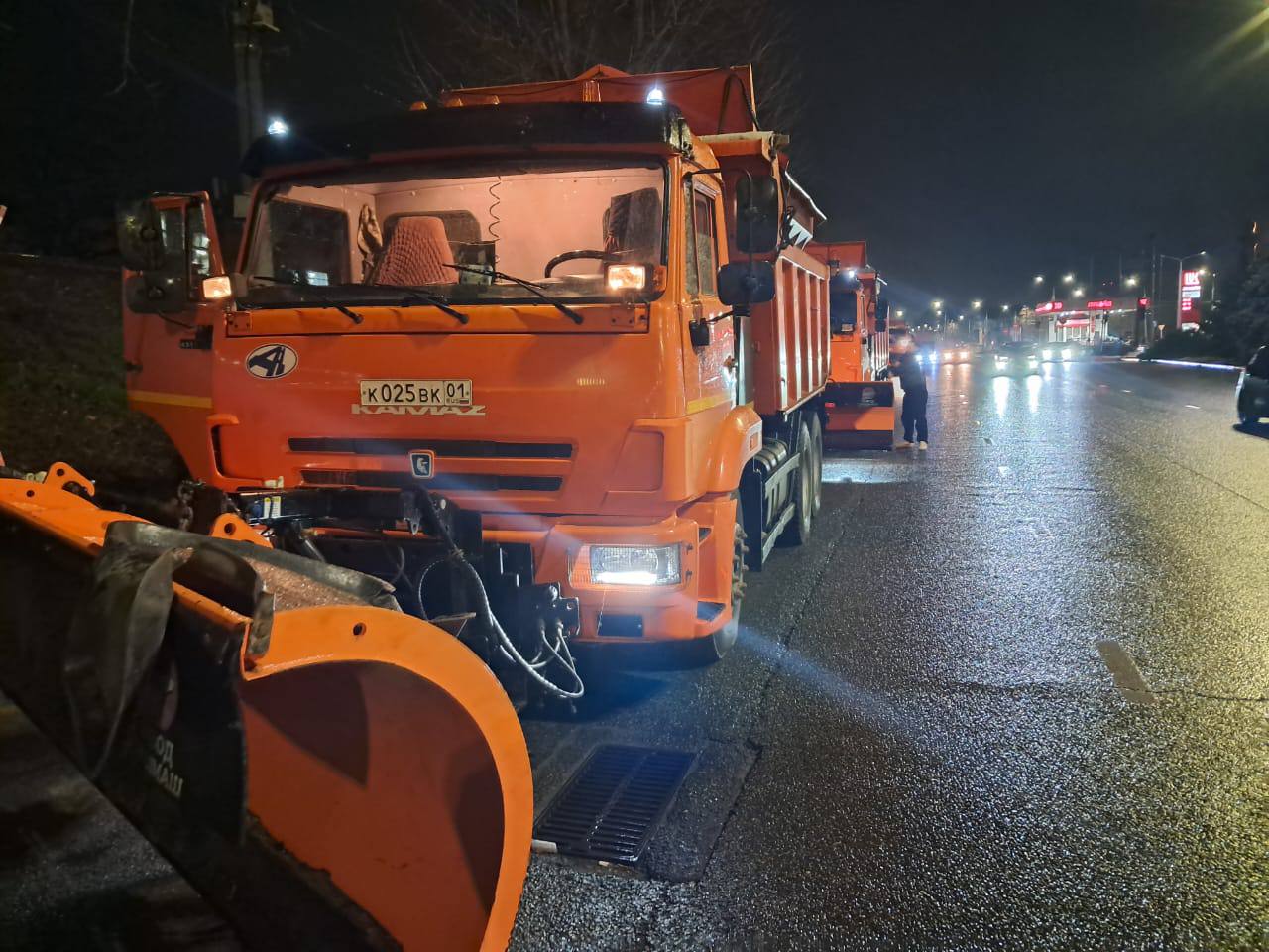 Всю ночь городские службы Краснодара обрабатывали от гололёда дороги, дворы и тротуары