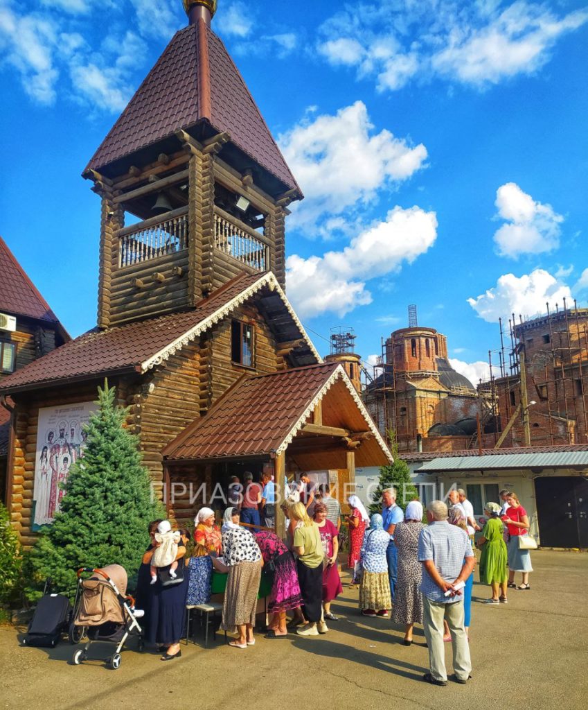 Пока прихожане ждали прибытие иконы с мощами, казалось, что верующих не так уж и много. Но во время службы в небольшой церкви яблоку негде было упасть. Многие так и остались во дворе храма. Хорошо, что служба транслировалась через колонки.